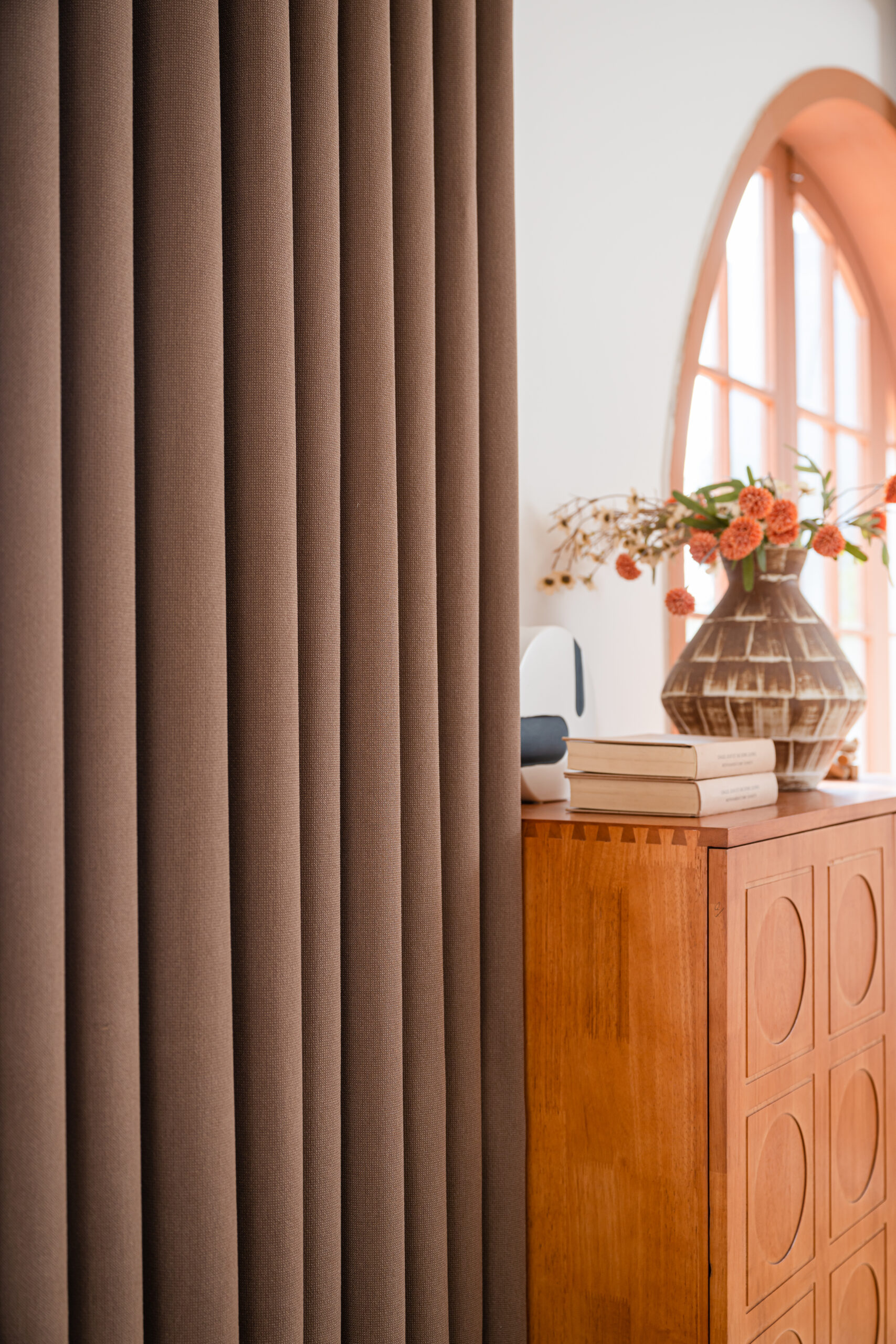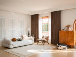 Khổ 3m4 giúp may rèm cho những không gian cửa lớn (cửa ban công, cửa kính cao tầng…) một tấm liền mạch, không cần can nối. Điều này không chỉ giúp tăng tính thẩm mỹ mà còn đảm bảo rèm rủ đẹp, không bị gãy khúc.