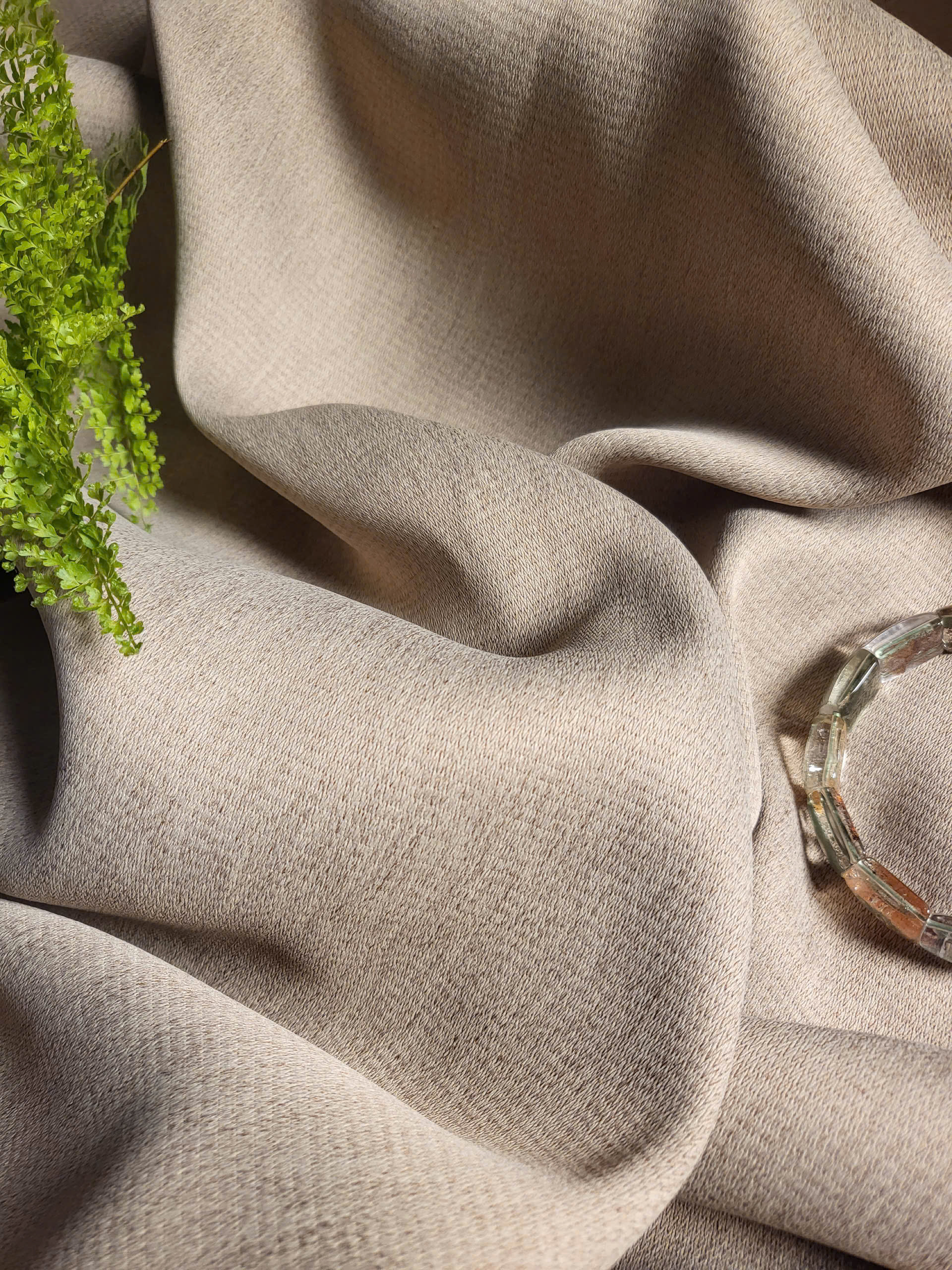 Không phô trương, không rực rỡ – rèm vải thô xước ghi điểm bằng vẻ đẹp tĩnh lặng nhưng sang trọng, với bề mặt vải như phủ lớp sương mờ thanh lịch. Mỗi đường xước nhỏ trên mặt vải là một điểm nhấn nghệ thuật, vừa tự nhiên, vừa chỉn chu.