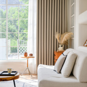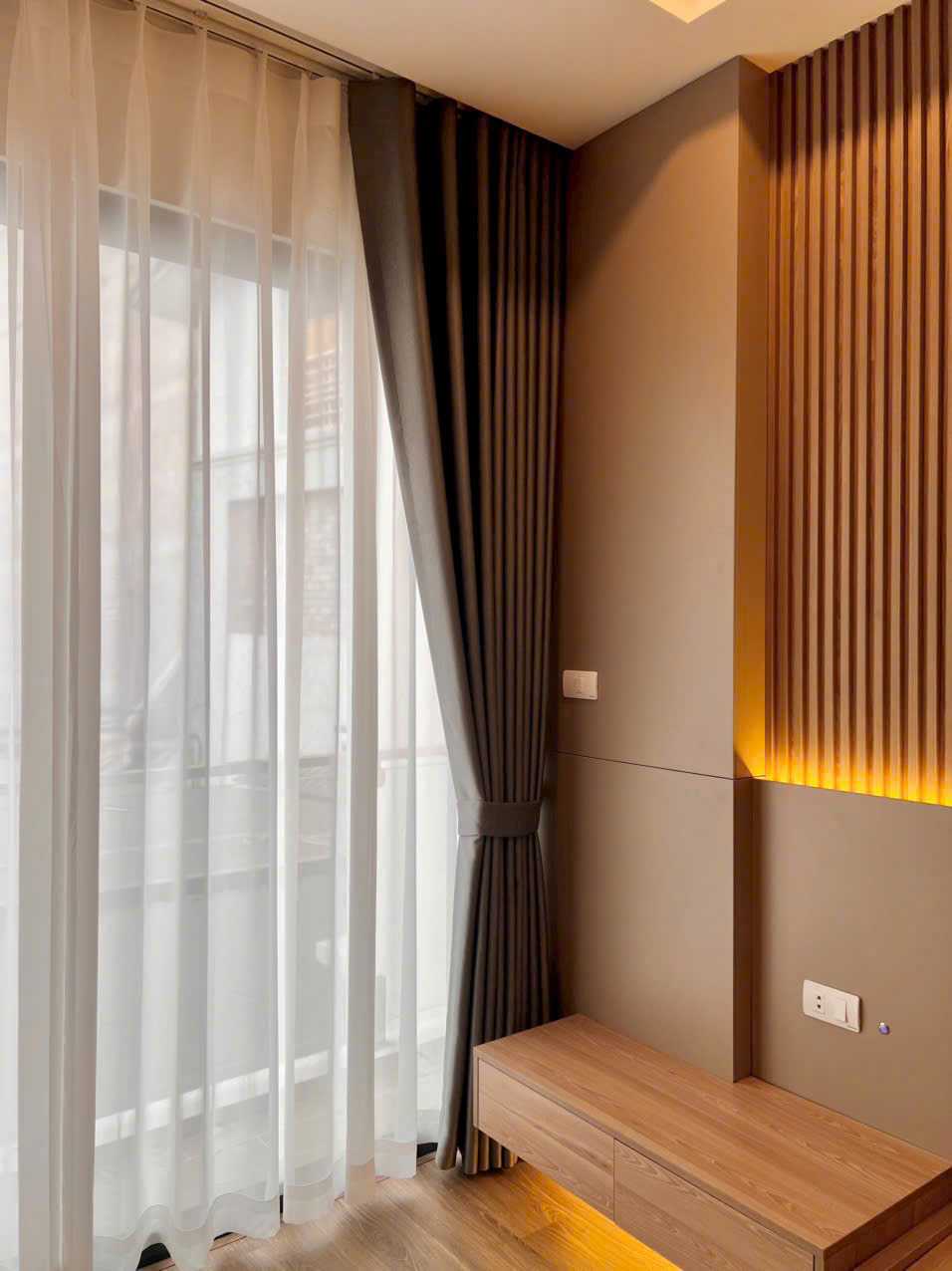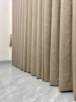 Vải có độ đứng vừa phải, giữ form rèm gọn gàng, đổ sóng đẹp, tạo cảm giác tinh tế, chuyên nghiệp cho không gian.